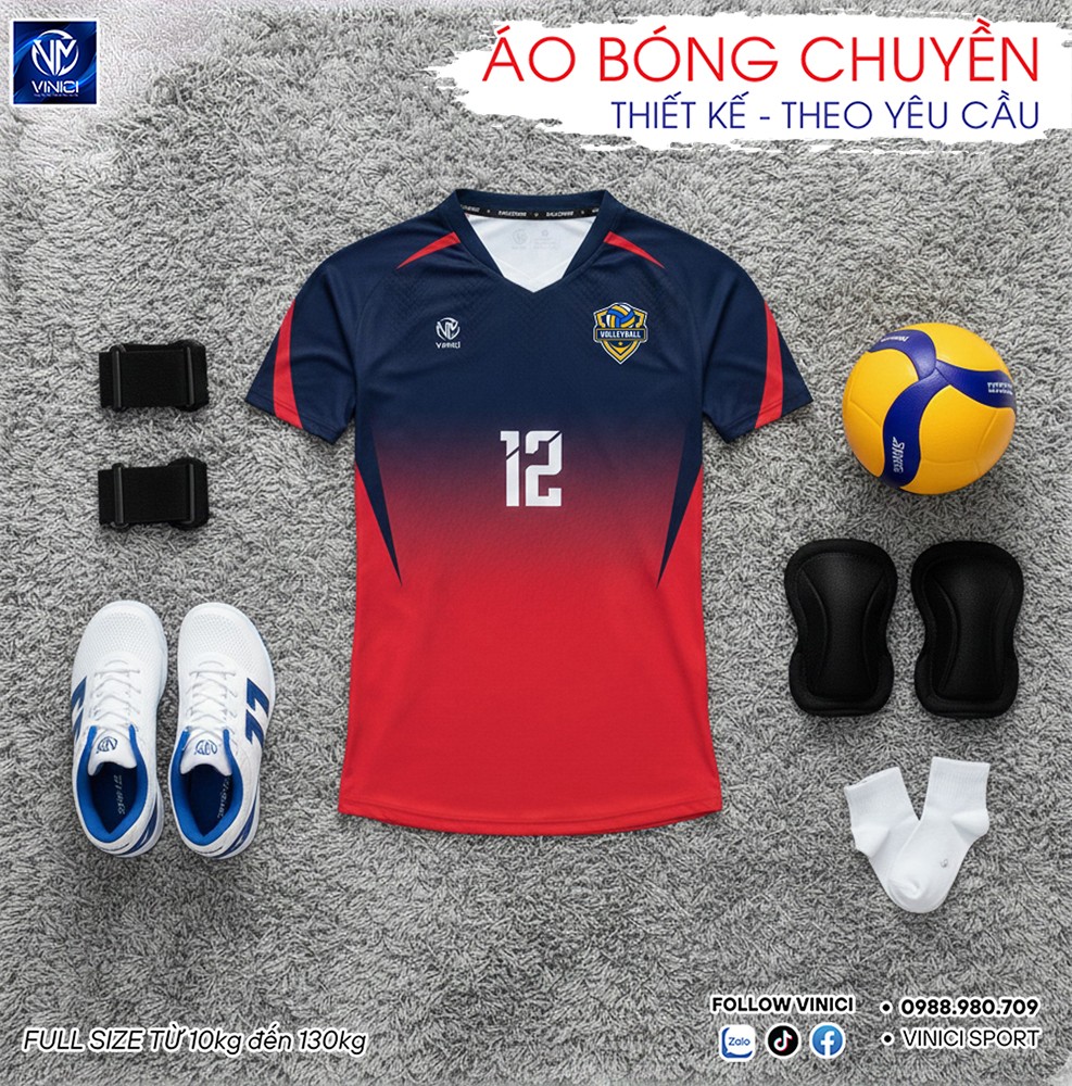 Áo bóng chuyền VINICI Navy Đỏ BC02-VNC068-15 mang thiết kế gradient độc đáo, chất vải thể thao cao cấp, thấm hút mồ hôi tốt, logo & số áo in sắc nét – lý tưởng cho thi đấu và tập luyện cường độ cao.