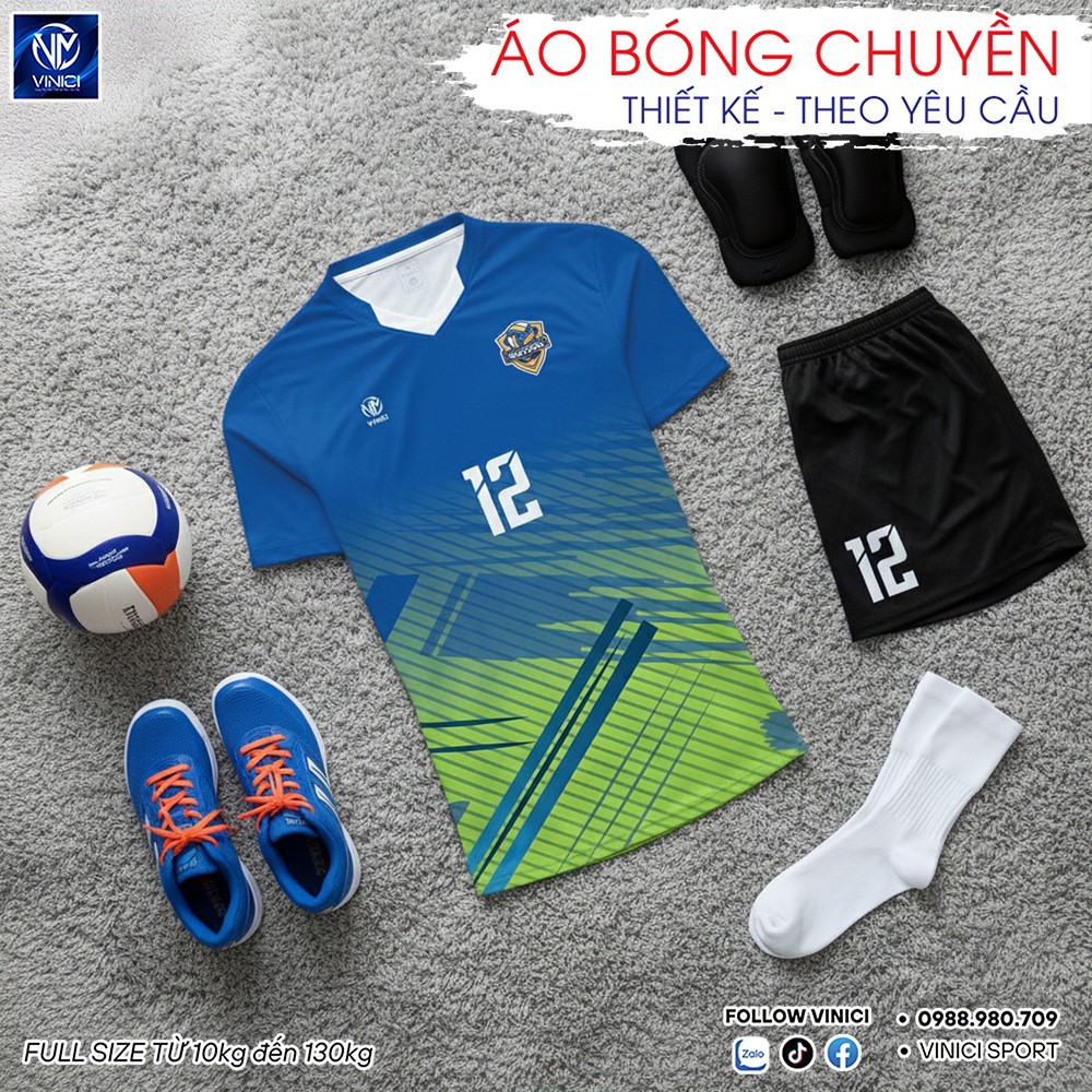 Áo Bóng Chuyền Thiết Kế BC02-VNC068-39 Màu Xanh Dương Năng Động