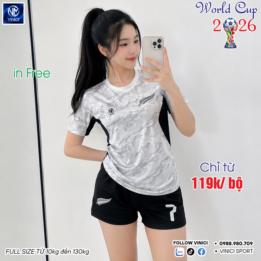 Ấn tượng ngay từ cái nhìn đầu tiên với Áo Bóng Đá Đội Tuyển New Zealand World Cup 2026 Màu Trắng Phối Đen: thiết kế hiện đại, chất vải siêu mát, giá chỉ từ 119k, đáp ứng mọi nhu cầu mặc đẹp – chơi thể thao – mặc nhà!