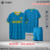 Logo CLB và thương hiệu in sắc nét trên ngực, màu trắng trên nền tối giúp tạo hiệu ứng thị giác mạnh mẽ và đẳng cấp.